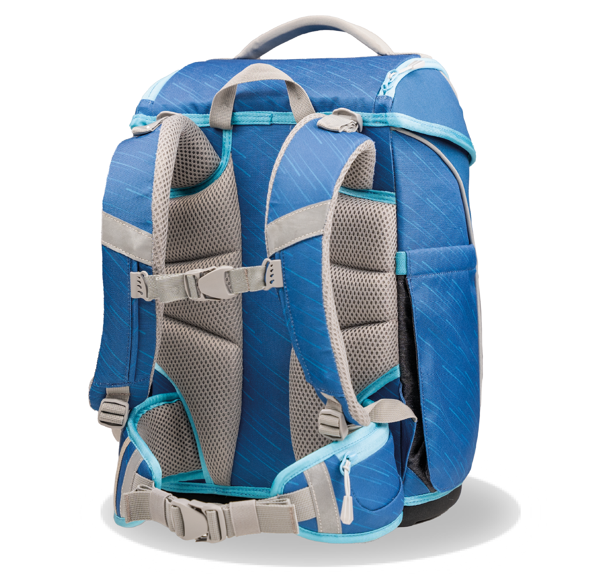Der Quin Light ist mit nur 990 Gramm der leichteste Schulranzen von VAVOO. Die weichen Schulterträger sind am Gurtband verstellbar (jedoch nicht am Rücken selbst wie bei den anderen beiden Quin-Modellen).