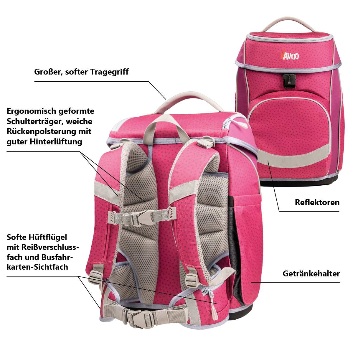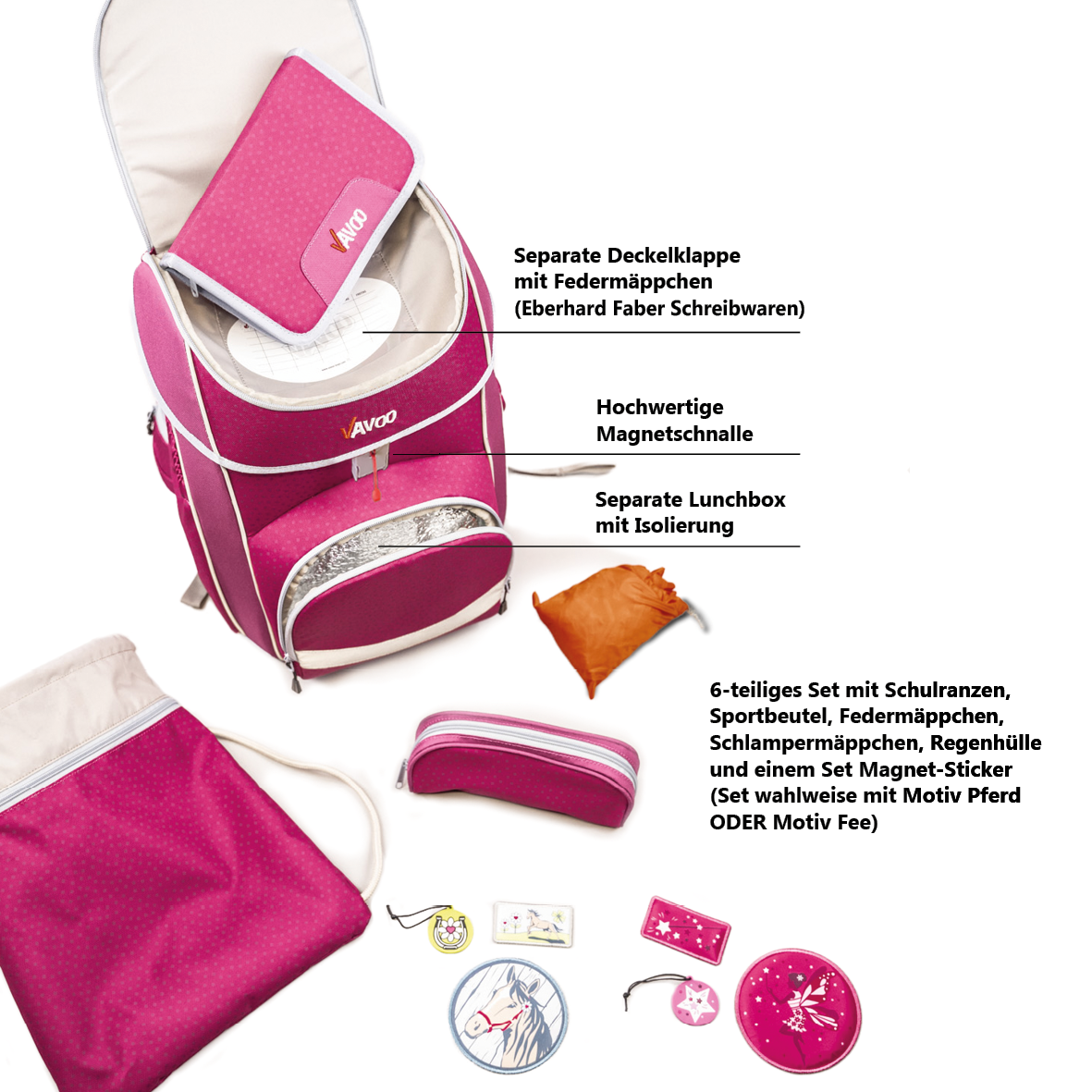 | Ausstattung | 6-teiliges Schulranzen-Set |